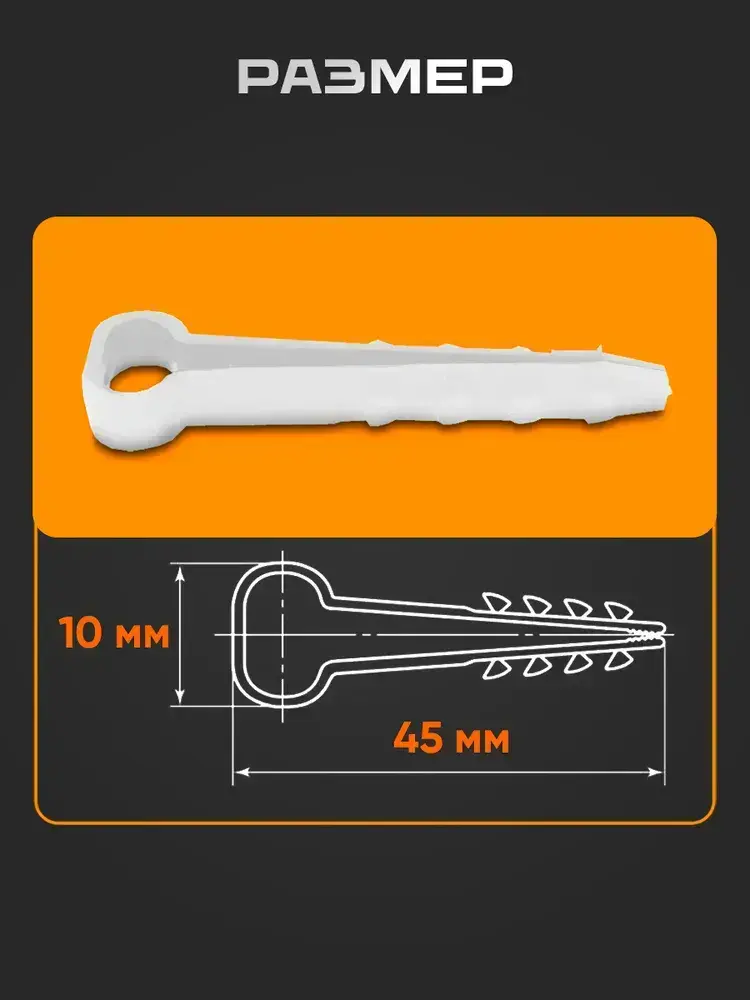 Дюбель-хомут для плоского кабеля 6-12 мм, белый (100 шт)