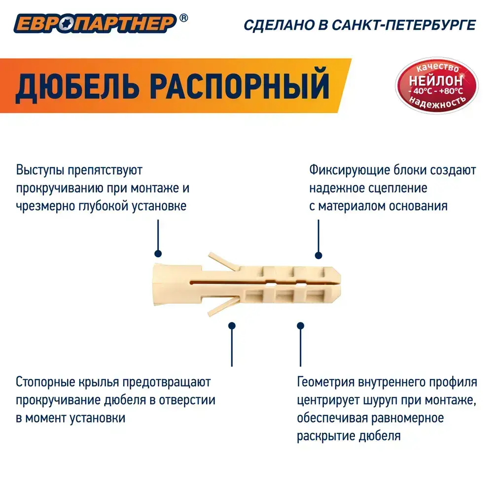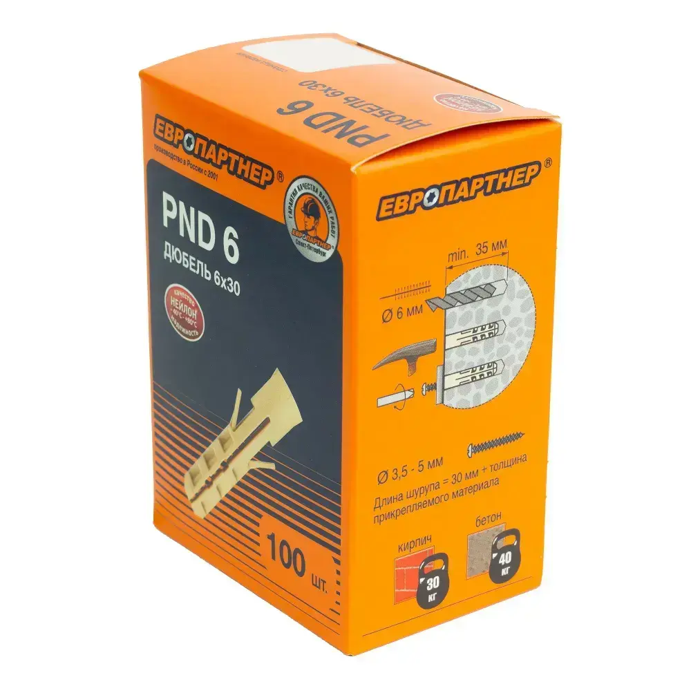 Дюбель распорный 6х30мм PND нейлоновый Европартнер (100 шт.)