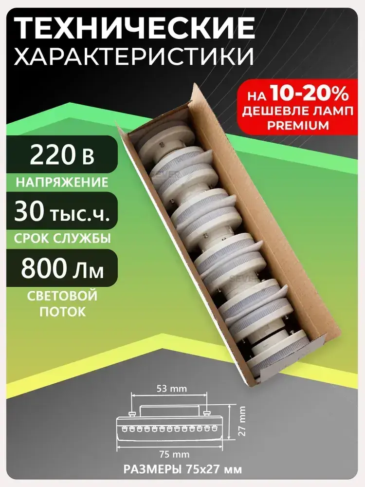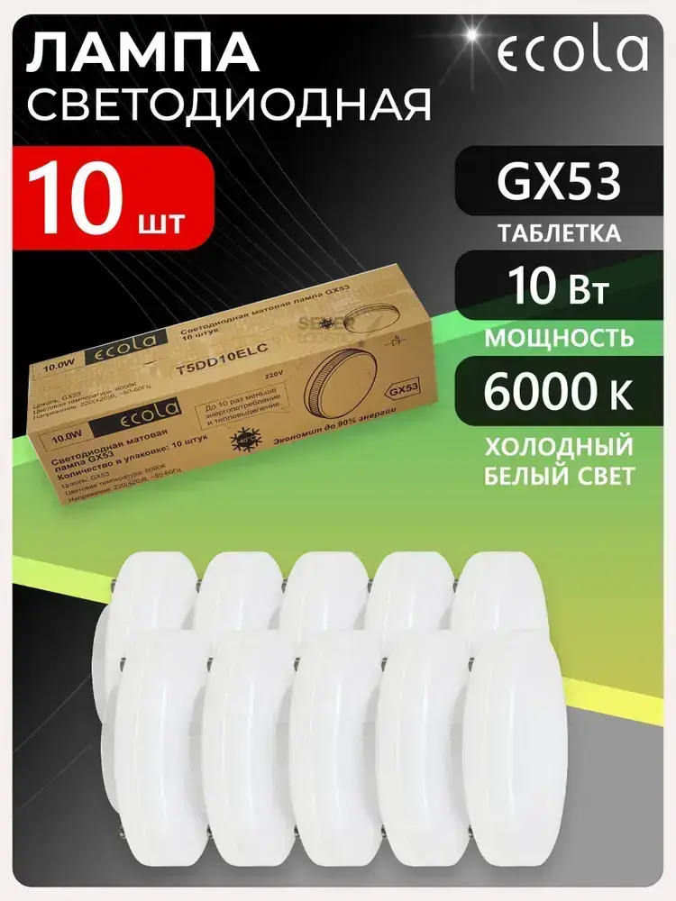 Ecola Лампочка, Цоколь:GX53, 10 Вт, Светодиодная, 10 шт.