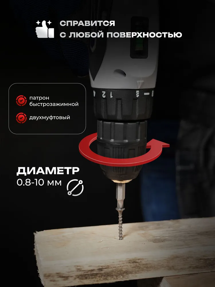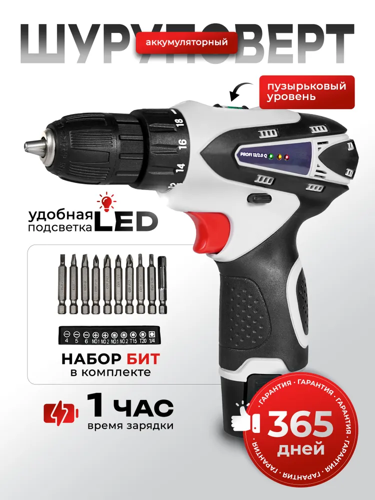 Electrolite Дрель-шуруповерт, От аккумулятора, 12 В, 26 Нм, 1 АКБ, PROFI 12Q с набором бит
