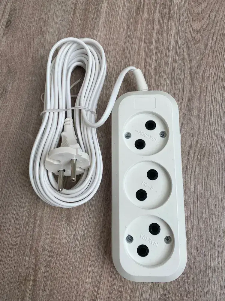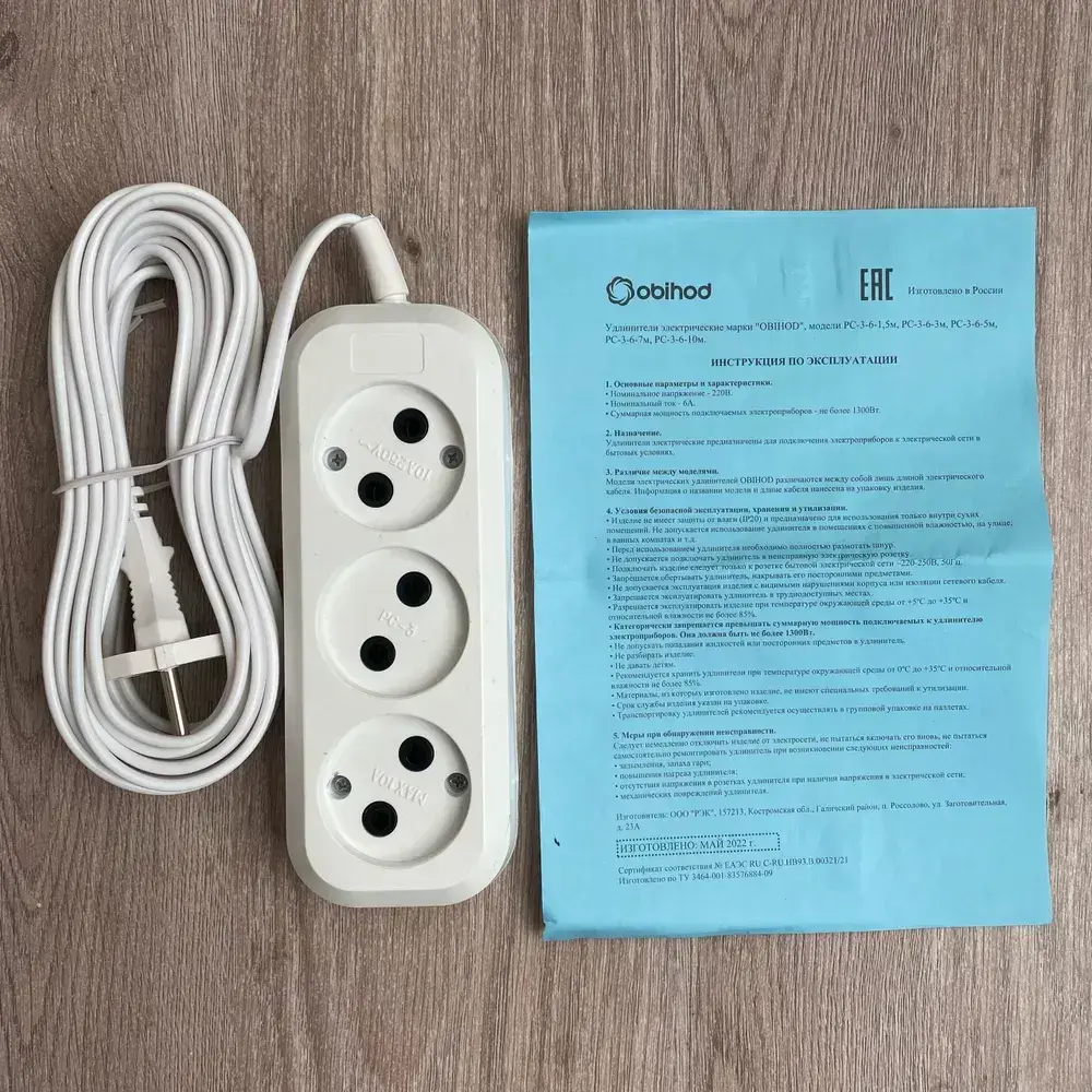 Электрический удлинитель тройник Obihod обиход ШВВП, 7м, белый, 6A
