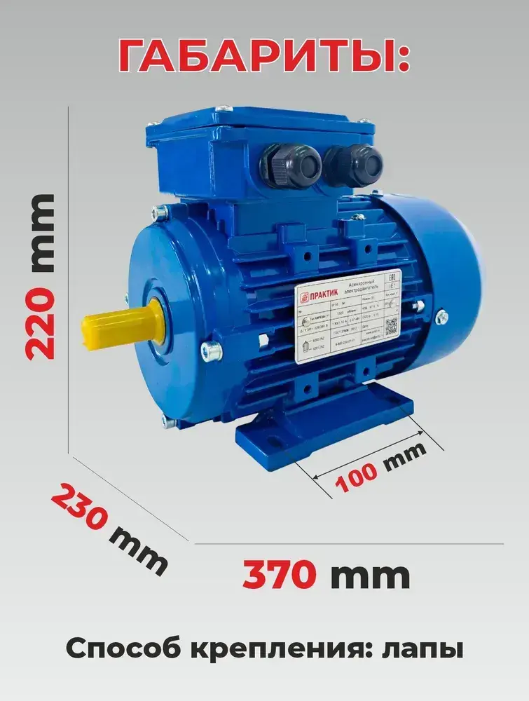 Электродвигатель 220В (380В), 2,2КВт, 3000 об/мин, АИР 80В2, PR13023