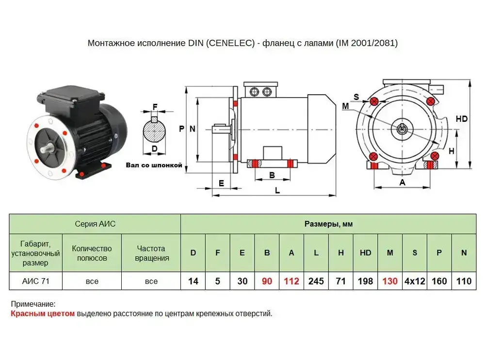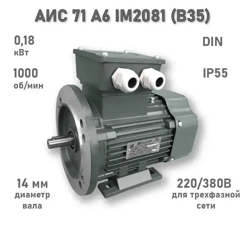 Электродвигатель ЭЛМАШ АИС 71 А6 IM2081 (B35) AL (0,18 кВт 1000 об/мин)