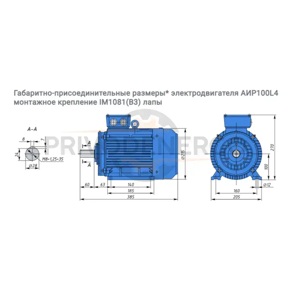 Электродвигатель общепромышленный АИР 100L4 4кВт 1500об/мин 1081 (лапы)