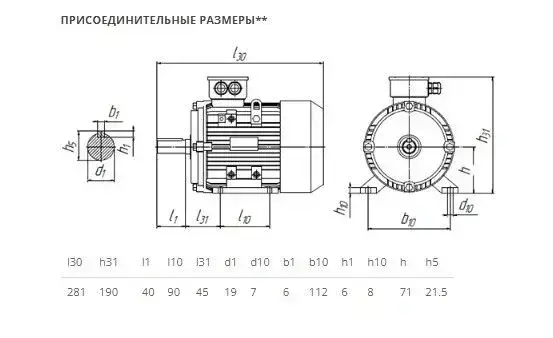 Электродвигатель трехфазный 5АИ 71 В4 IM 1081 0.75 кВт 1500 об/мин
