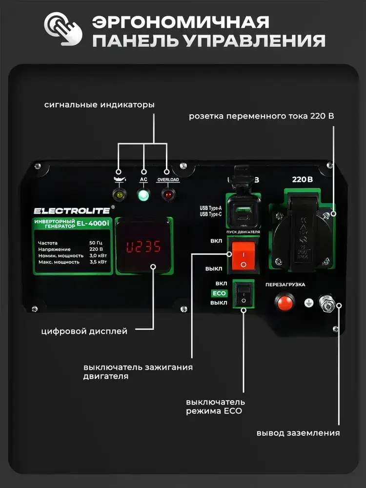 Электрогенератор бензиновый инверторный электростанция Electrolite EL 4000i (3500 Вт, 2 USB порта) 23 кг 3кВт