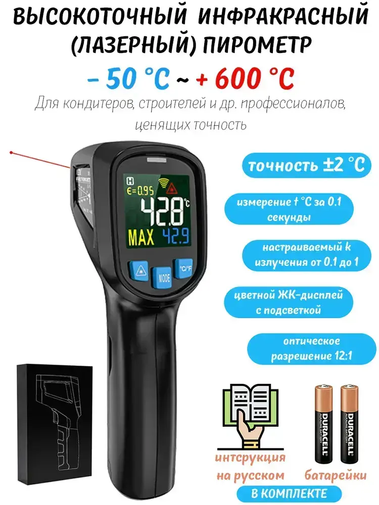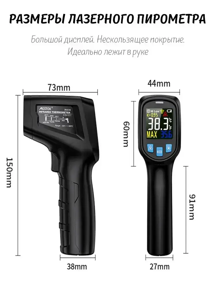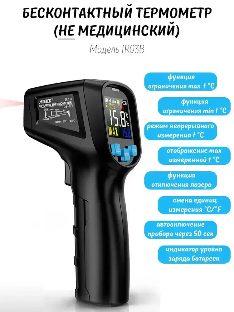 Электронный бесконтактный инфракрасный лазерный пирометр (НЕ медицинский) IR03B