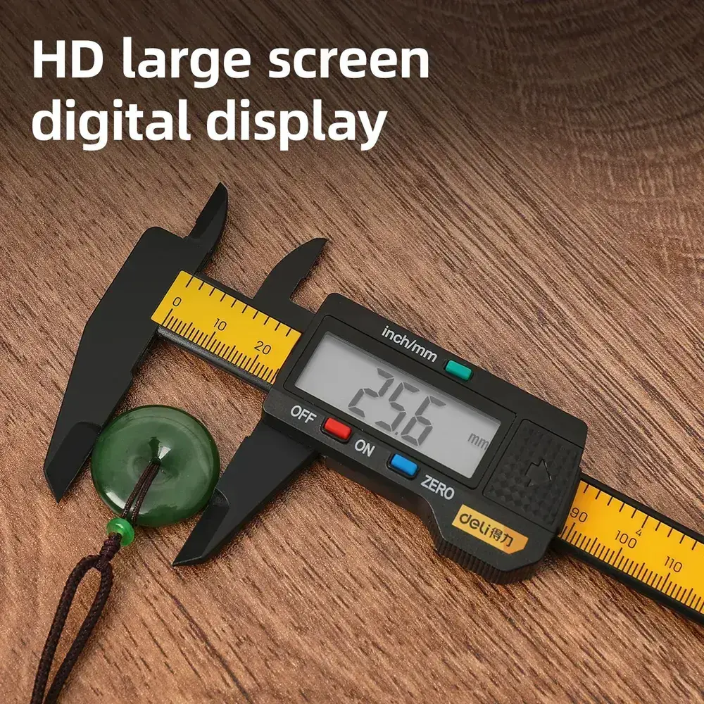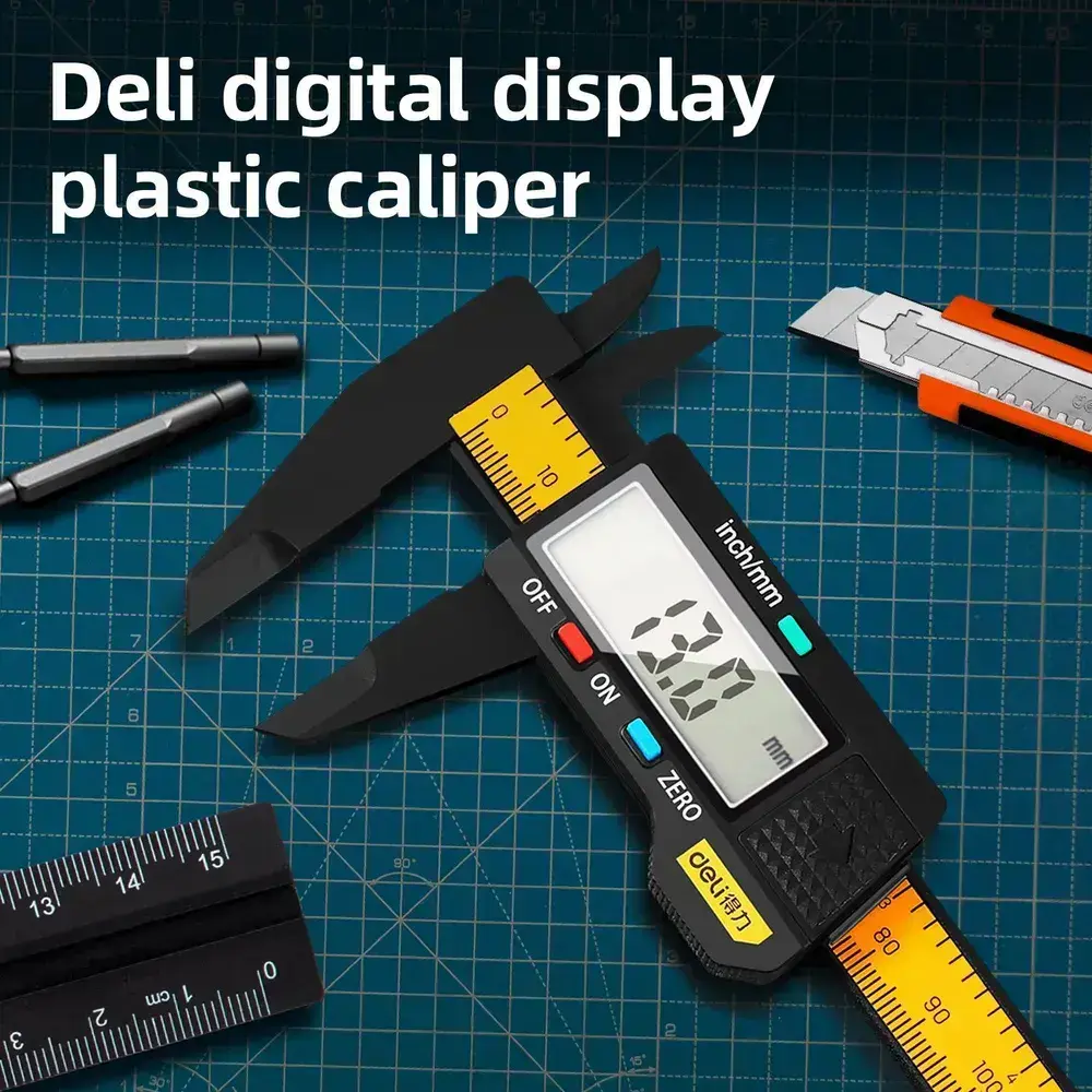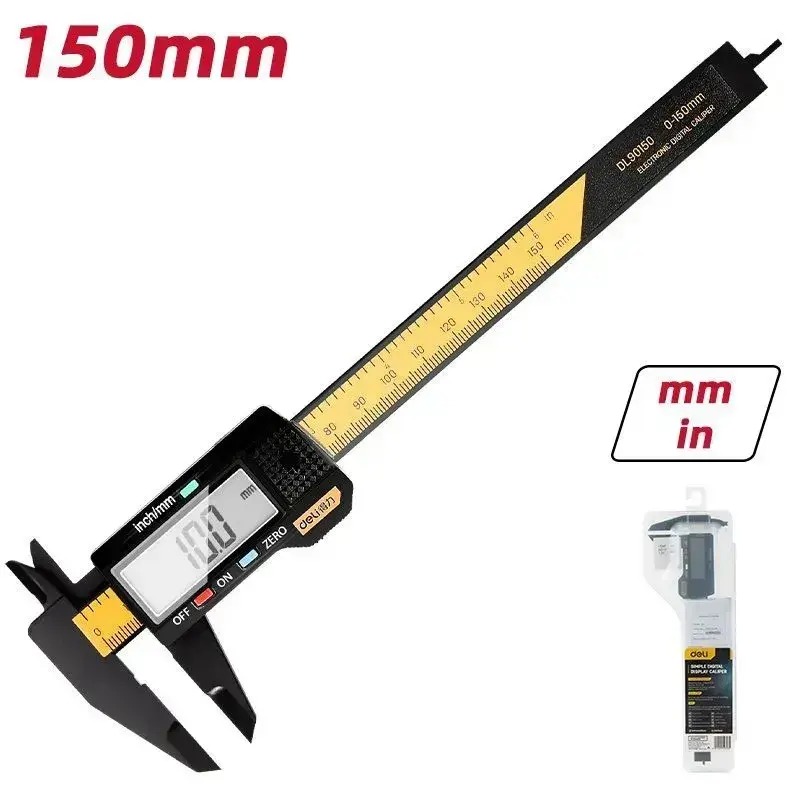 Электронный штангенциркуль 150мм Deli DL90150 (метрическая/дюймовая конвертация, пластик, светодиодный дисплей)