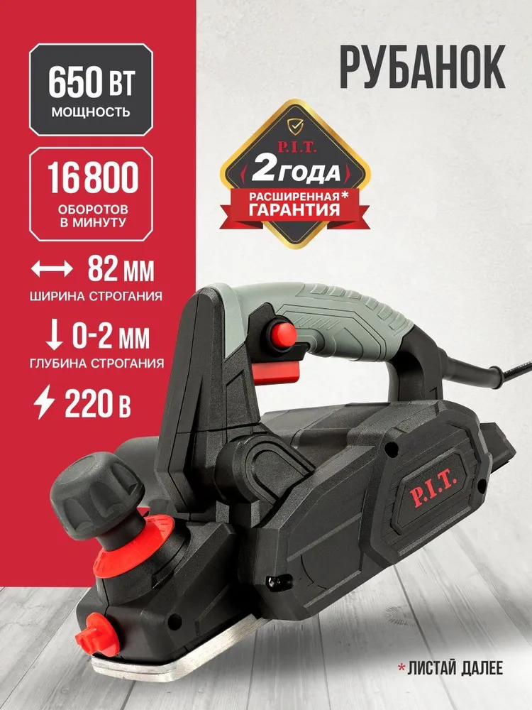 Электрорубанок P.I.T. PEP82-C, 650Вт, 2мм, 82мм, 16800 об/мин, мешок для пыли