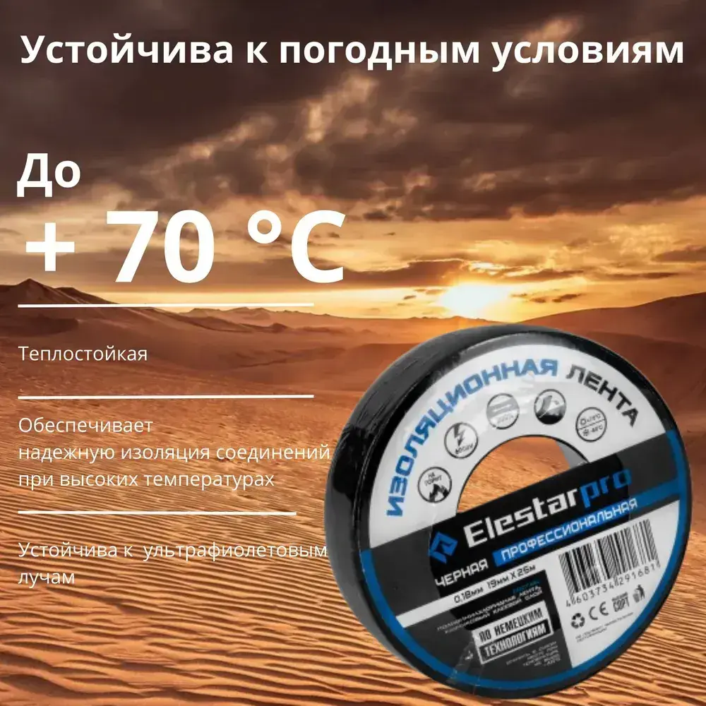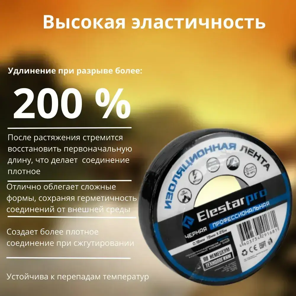 Elestarpro Изолента 19 мм 25 м 180 мкм, 10 шт.