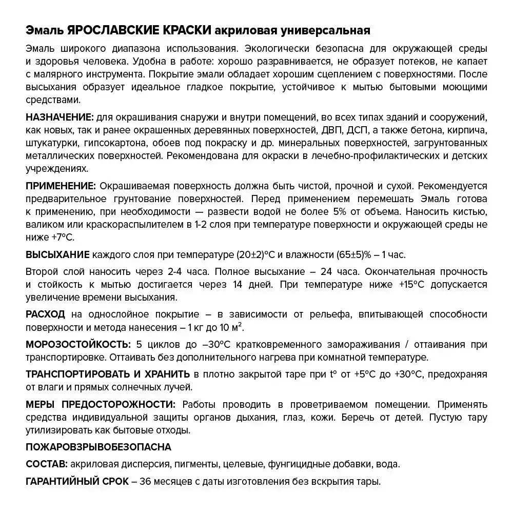 Эмаль акриловая универсальная ЯРКРАСКИ белая матовая без запаха, 0.9 кг