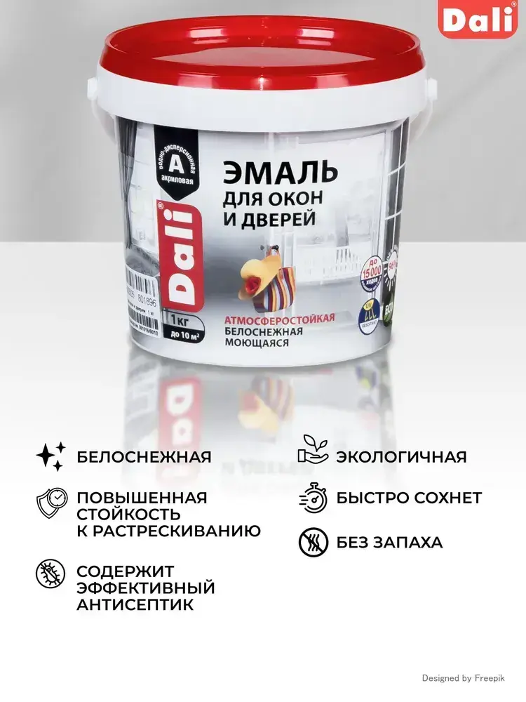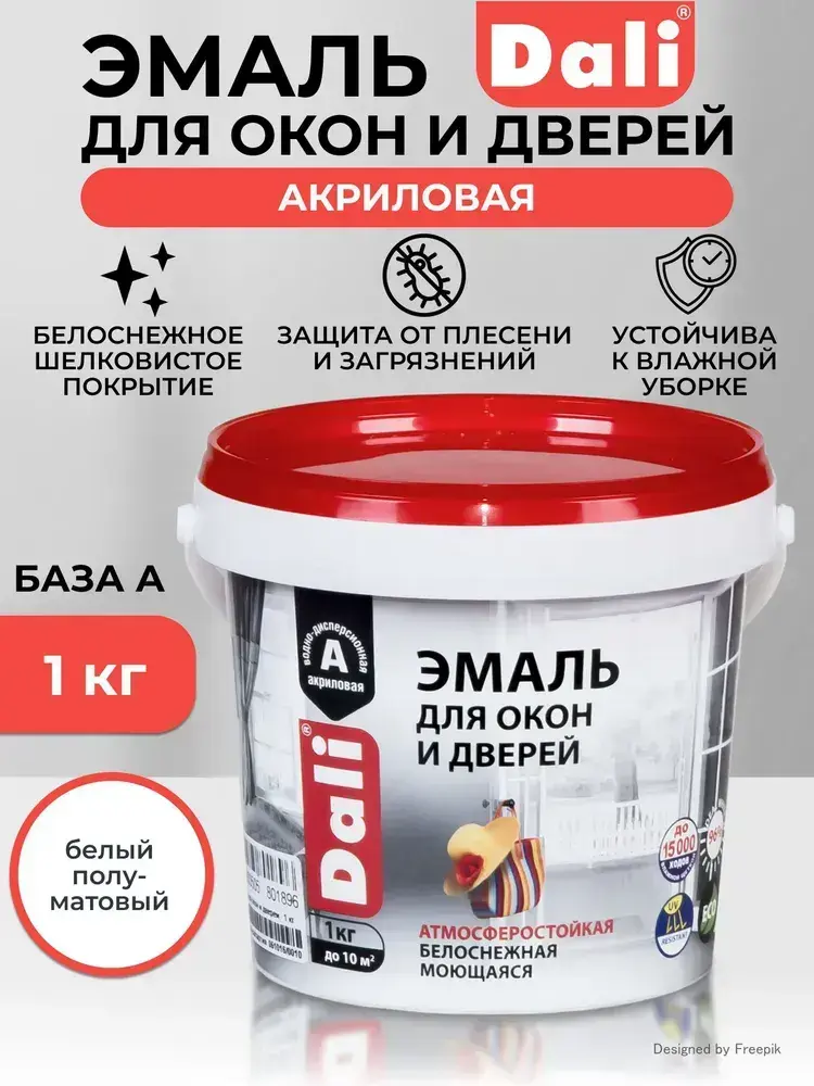 Эмаль для окон и дверей Dali, акриловая, полуматовая, база A, белая 1кг