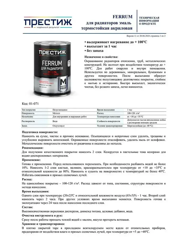 Эмаль Ferrum для радиаторов термостойкая, быстросохнущая, Белая 0,9 кг