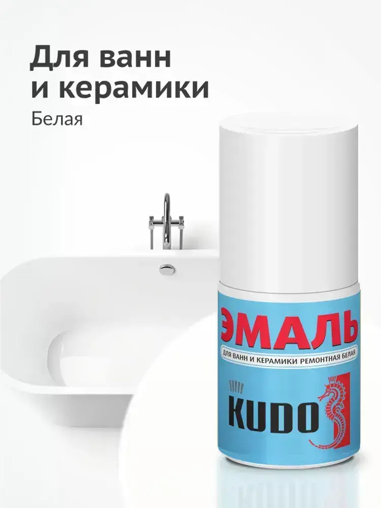 Эмаль KUDO "Краска для реставрации ванн и керамики", флакон с кисточкой для подкраски сколов, алкидная, 15 мл, белый глянцевый KU-7K1301