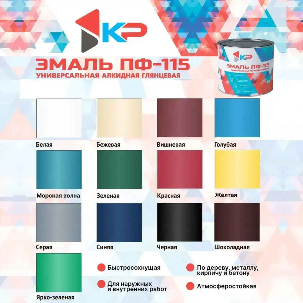 Эмаль ПФ-115 КР быстросохнущая, атмосферостойкая, белая, 0.8 кг / краска по металлу, дереву, кирпичу и бетону, для наружных и внутренних работ