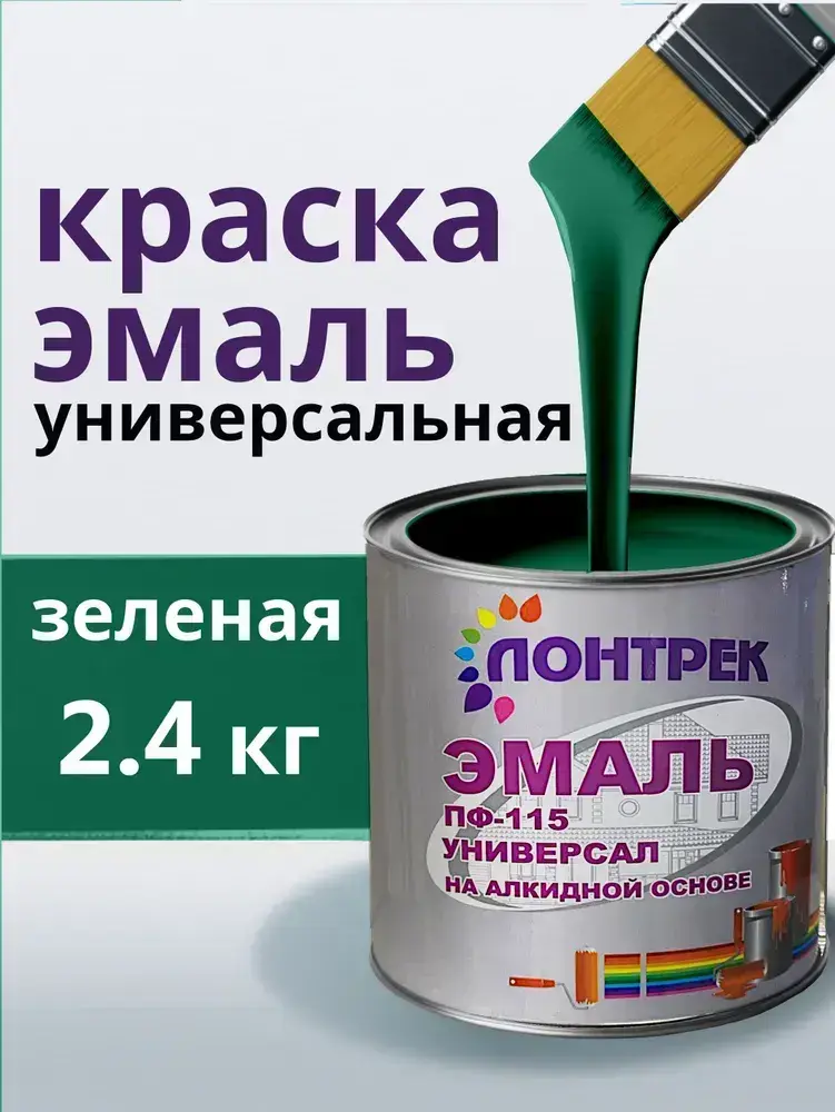 Эмаль ПФ-115 по металлу дереву зеленая 2.4 кг
