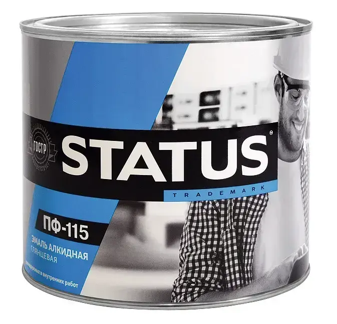Эмаль ПФ-115 STATUS белая, атмосферостойкая, глянцевое покрытие, 0.8кг / краска по металлу, дереву, кирпичу и бетону / для наружных и внутренних работ