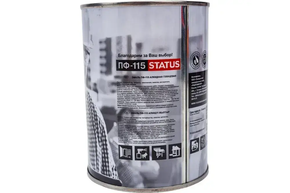 Эмаль ПФ-115 STATUS белая, атмосферостойкая, глянцевое покрытие, 1.8кг / краска по металлу, дереву, кирпичу и бетону / для наружных и внутренних работ