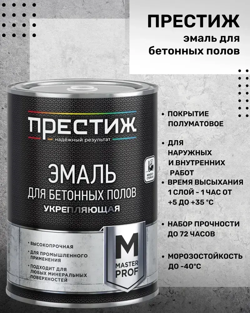 Эмаль Престиж для бетонных полов серая полуматовая 1 кг