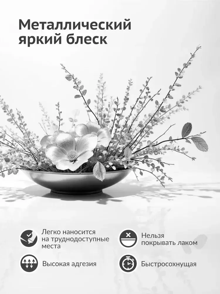 Эмаль универсальная металлик KUDO SILVER FINISH, аэрозольная краска, Хром