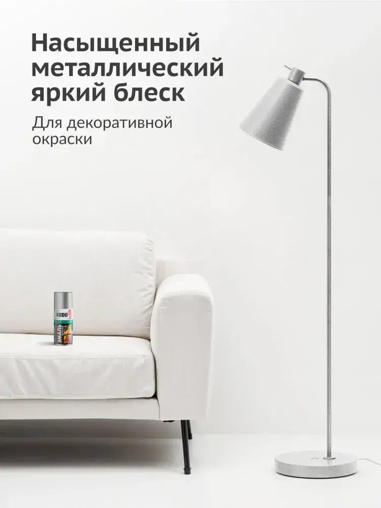 Эмаль универсальная металлик KUDO SILVER FINISH, аэрозольная краска, Серебро