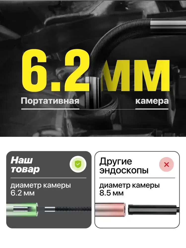 Эндоскоп автомобильный для смартфона с подсветкой Type C 360 iPhone Android ios поворотный