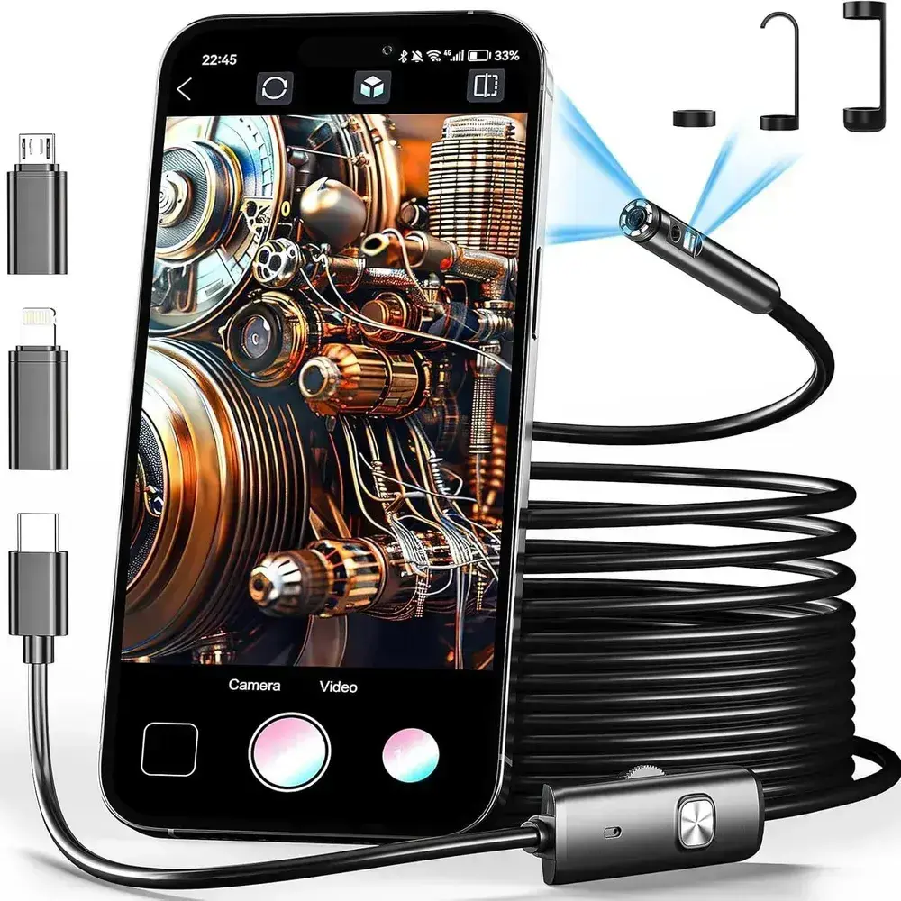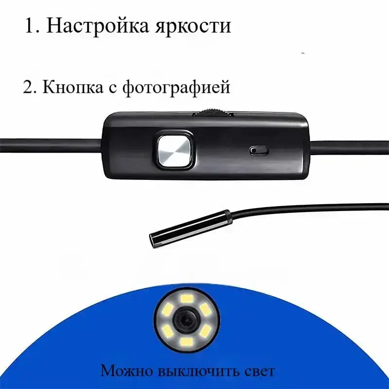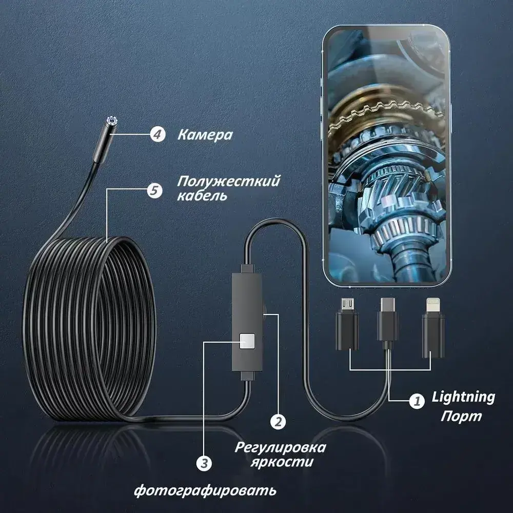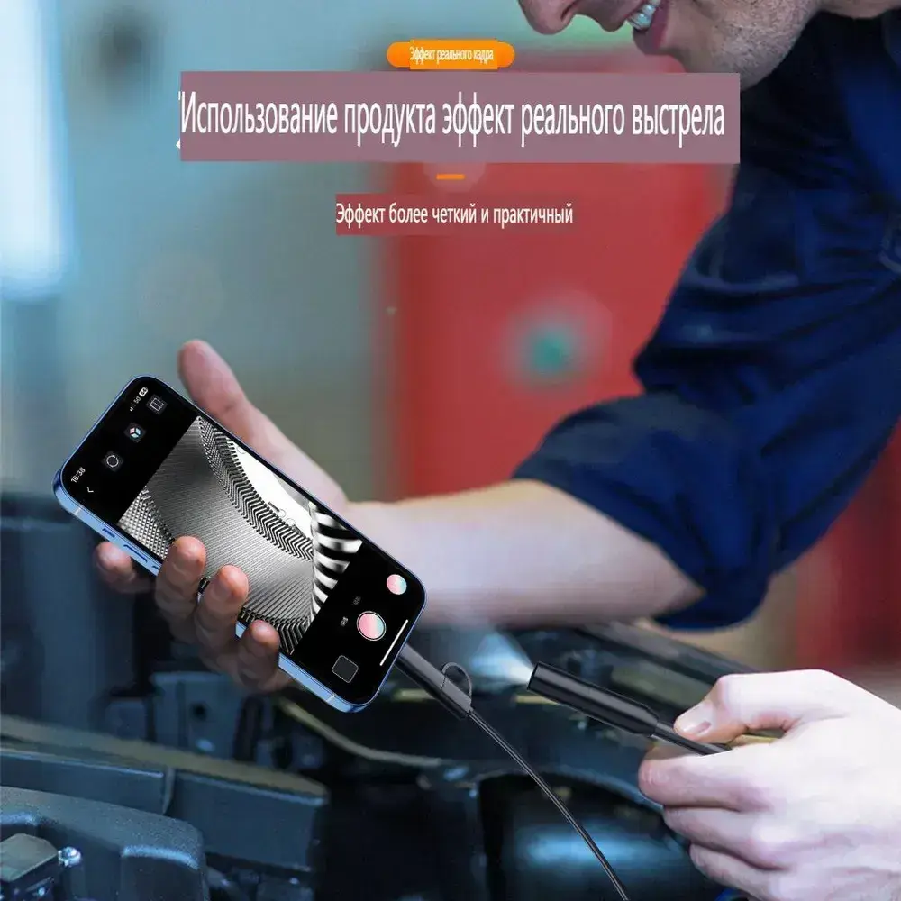 эндоскоп автомобильный, С 8 регулируемыми светодиодными лампами, камера 1920 HD, 2 метра полужёсткого кабеля, подходит для iOS и Android ,эндоскоп для смартфона с подсветкой