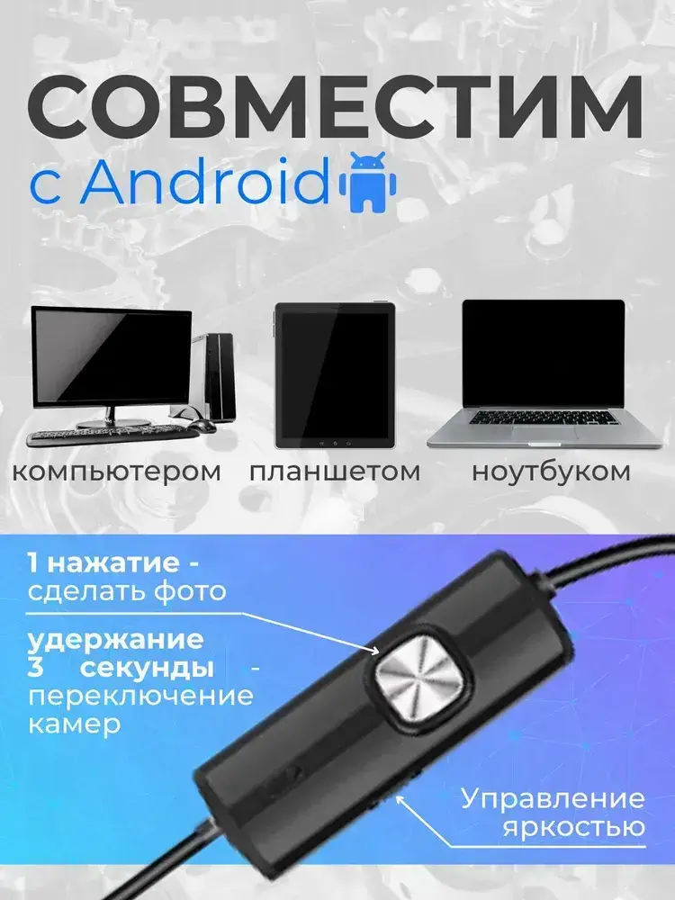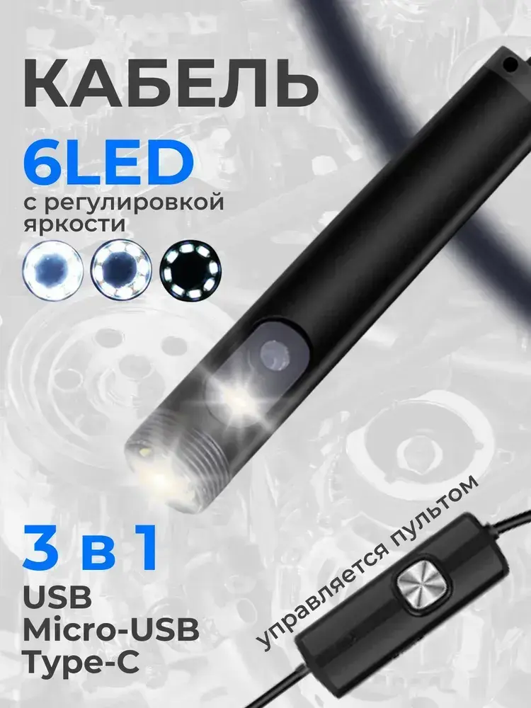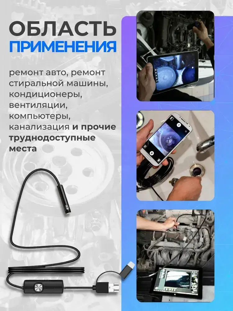 Эндоскоп автомобильный с двумя камерами / Видеоэндоскоп промышленный / Камера для труднодоступных мест с подсветкой, водонепроницаемый для двигателя.