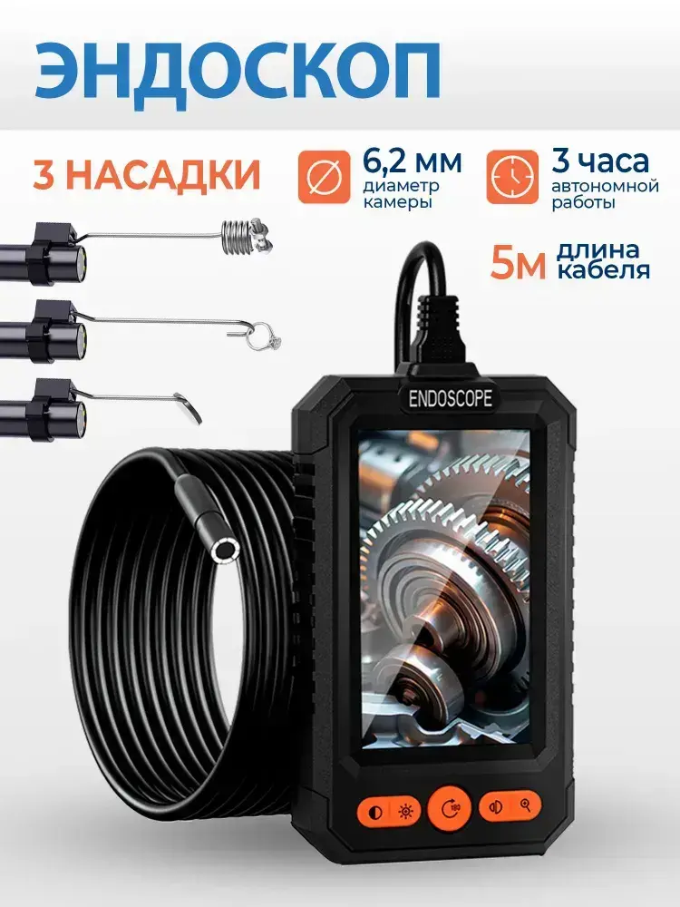 Эндоскоп автомобильный с экраном 4,3" IPS, диаметр камеры 8мм, 2600mAh