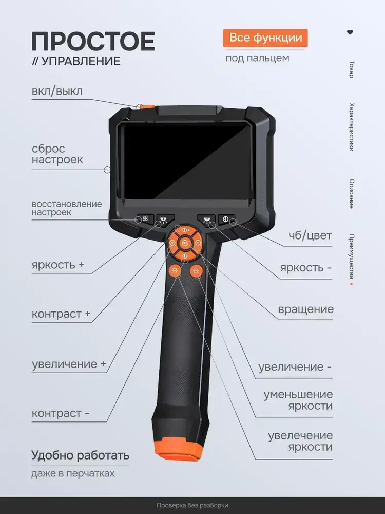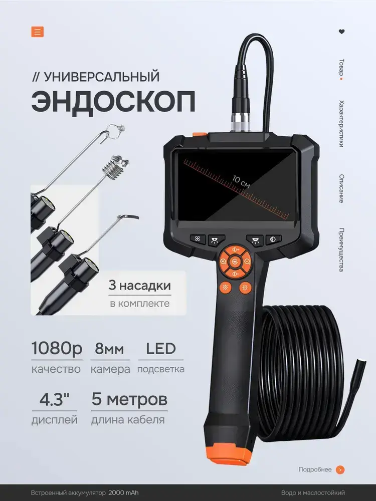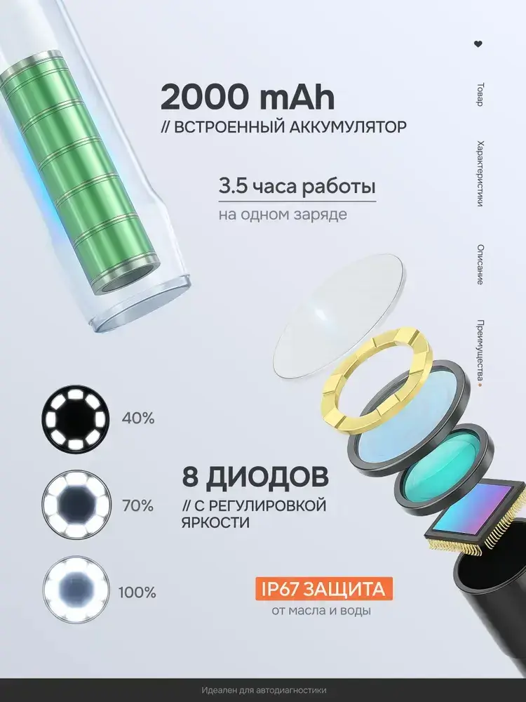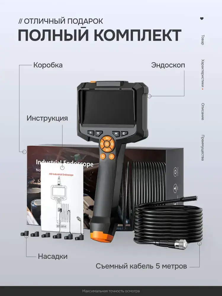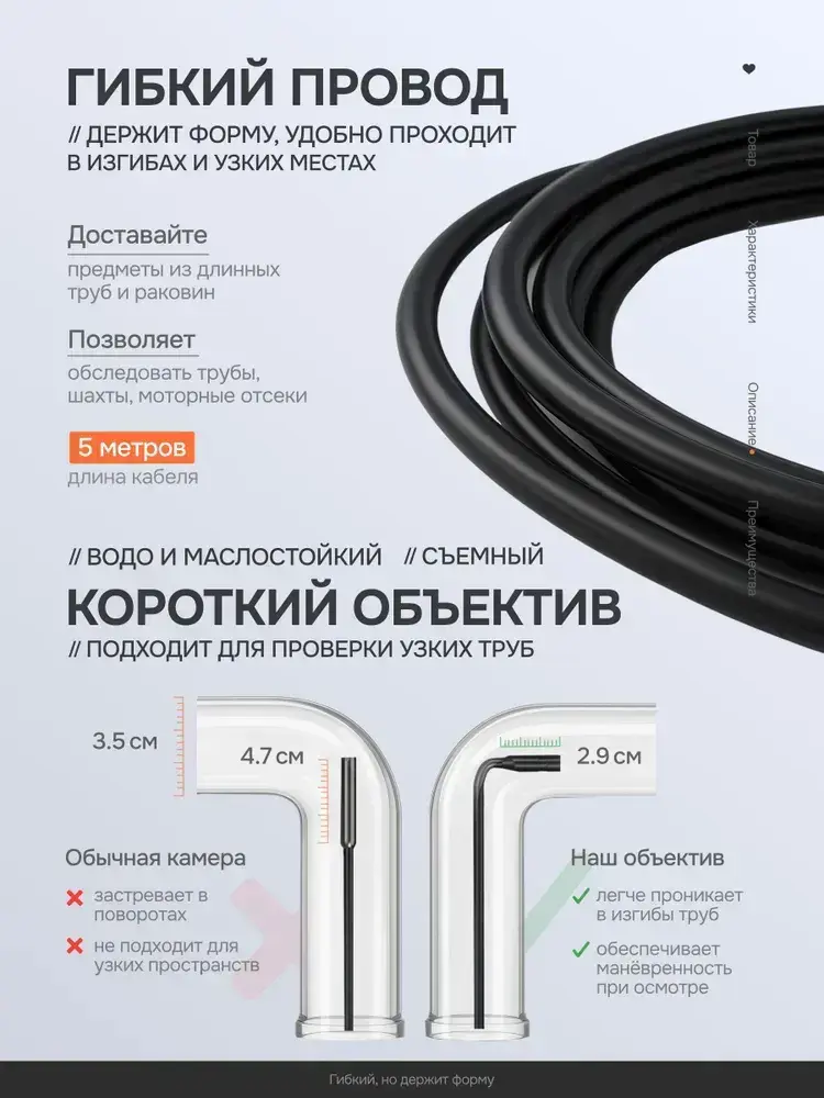 Эндоскоп автомобильный / Видеоэндоскоп промышленный / Камера для труднодоступных мест с подсветкой, водонепроницаемый для двигателя.