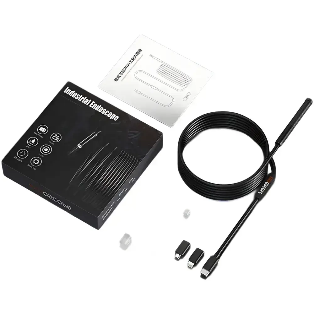 Эндоскоп для смартфона Андроид, Айфон и компьютера 1 м wifi 2 камеры, водонепроницаемый, для автомобиля и бытовых нужд