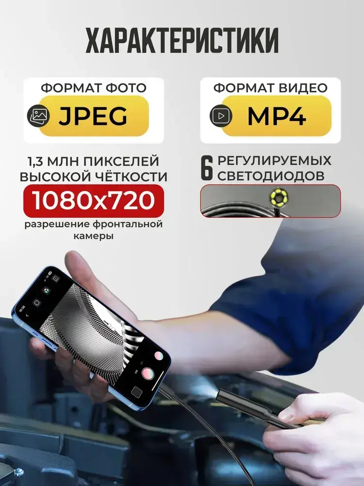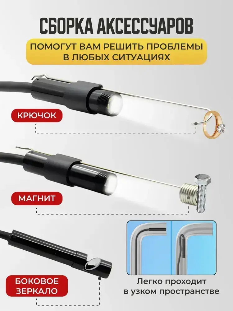 Эндоскоп для смартфона Андроид, Айфон и компьютера 5 м / wifi 2 камеры / водонепроницаемый, для автомобиля и бытовых нужд
