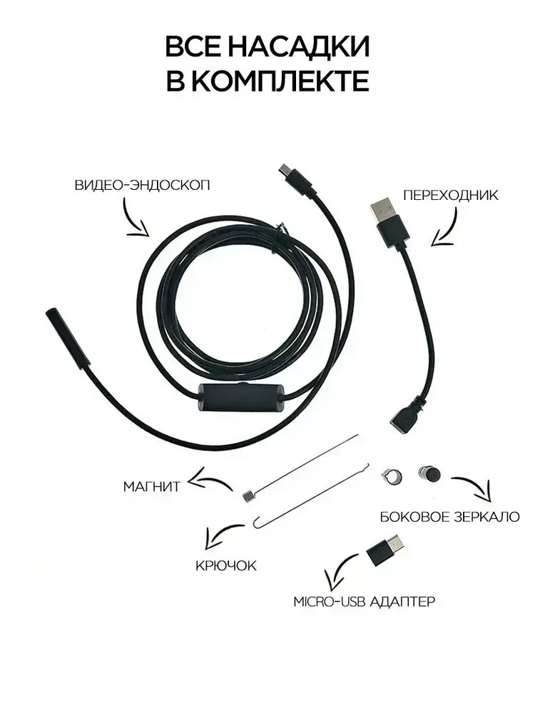 Эндоскоп для смартфона автомобильный водонепроницаемый, гибкая видеокамера с подсветкой USB для смартфона Android, MAC, для PC,Type-C 2 метра