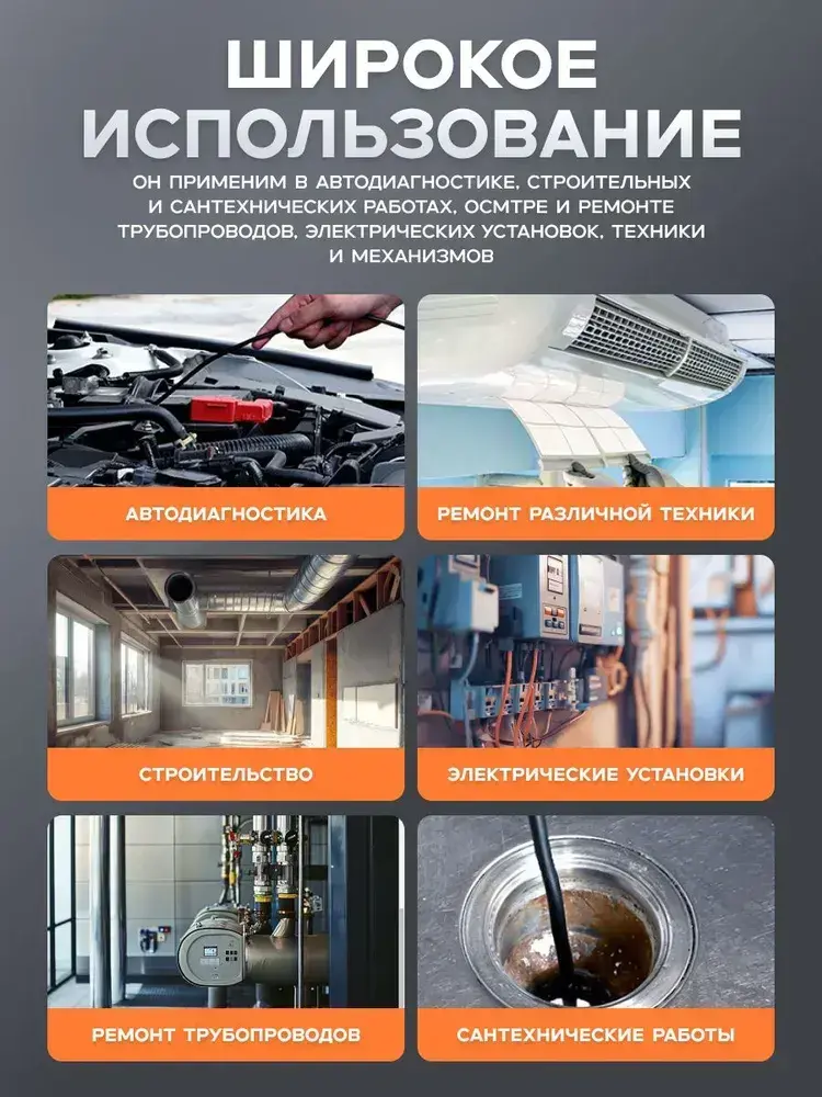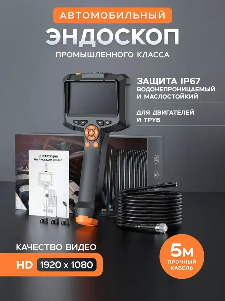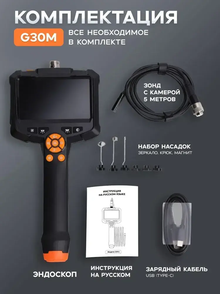 Эндоскоп G-30 кабель 5 м / для осмотра автомобильного двигателя, канализационной трубы / ручной эндоскоп с дисплеем