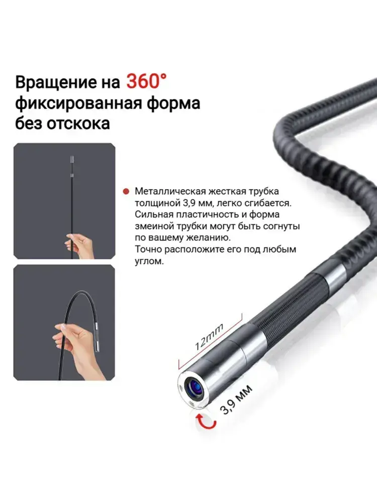 Эндоскоп с экраном 5 дюймов, 1 камера, зонд 3,9 мм