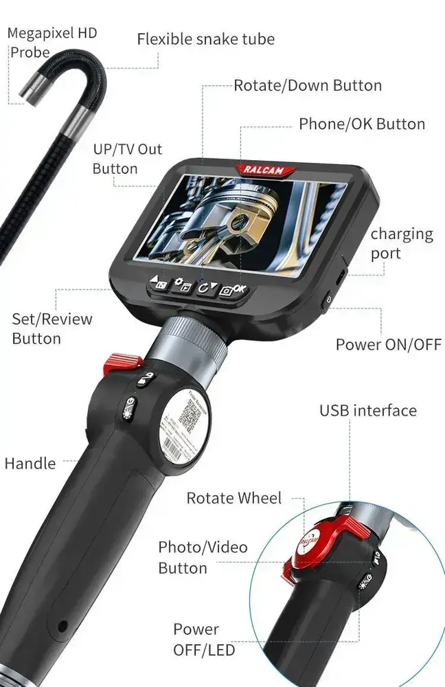 Эндоскоп/180 градусов/6.2мм+ЖК ДИСПЛЕЙ/ручной эндоскоп RalCam
