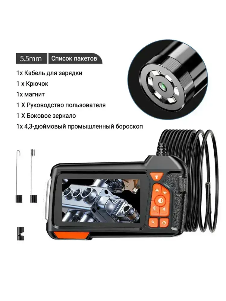 Эндоскопическая камера с экраном 4,3 дюйма, HD, 5,5 мм, 2 метра, видеоскопы