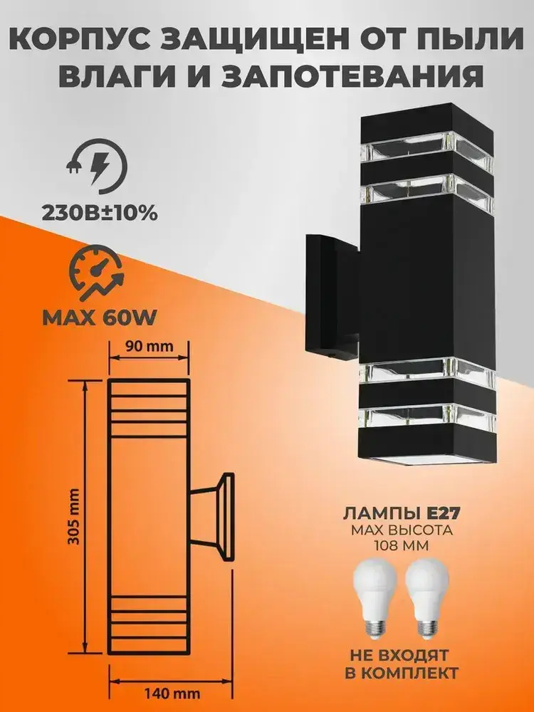 ENERLI Уличный светильник, E27, количество ламп:2шт