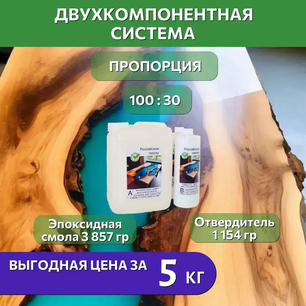 Эпоксидная смола для столешниц 5 кг (стол-река, для дерева, до 5 см)