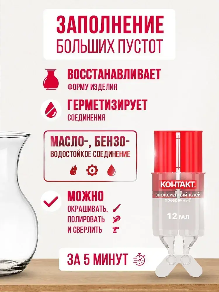 Эпоксидный клей КОНТАКТ прозрачный 12 мл.