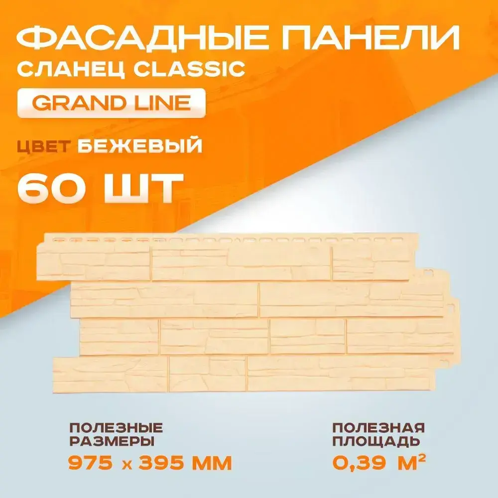 Фасадная панель Grand Line Сланец Classic Бежевый 0,975 x 0,395 мм 0,39 м2 6 уп - 60 шт