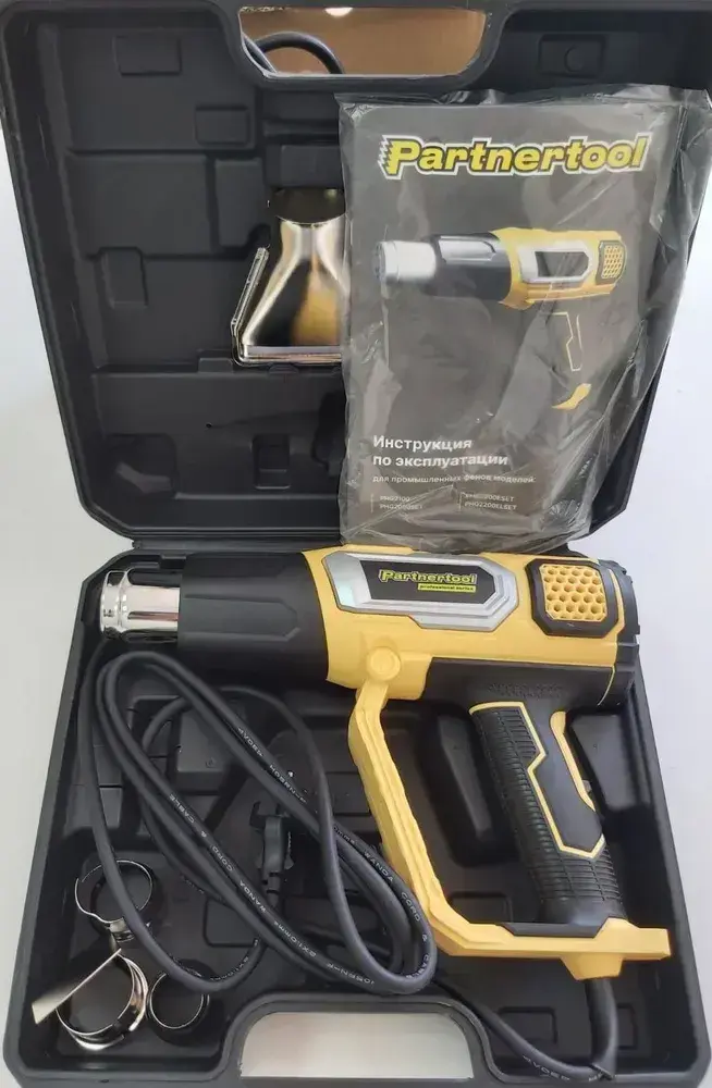 Фен промышленный-строительный Partnertool PHG2200ELSET, ЖК-ДИСПЛЕЙ КЕЙС 2.2кВт,60-600С, плавная рег. температуры, 300-500л.м, профессиональная серия