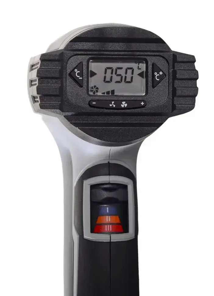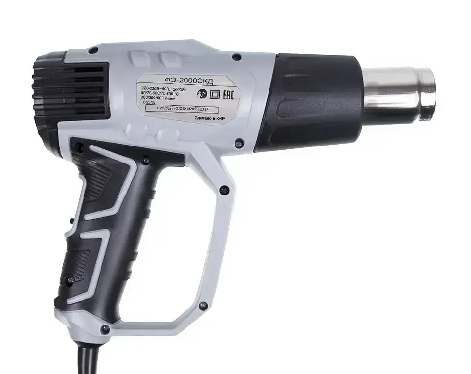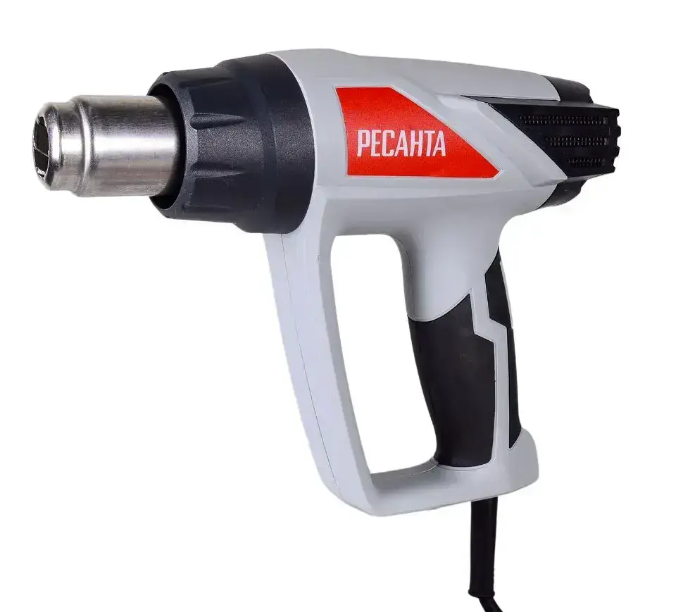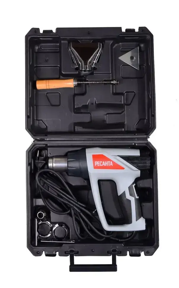 Фен строительный Ресанта ФЭ-2000ЭКД (2000 Вт, 3 режима, воздушный поток 300-500 л/мин, температура воздуха 600 С, кейс, наличие дисплея) / промышленный фен / термопистолет