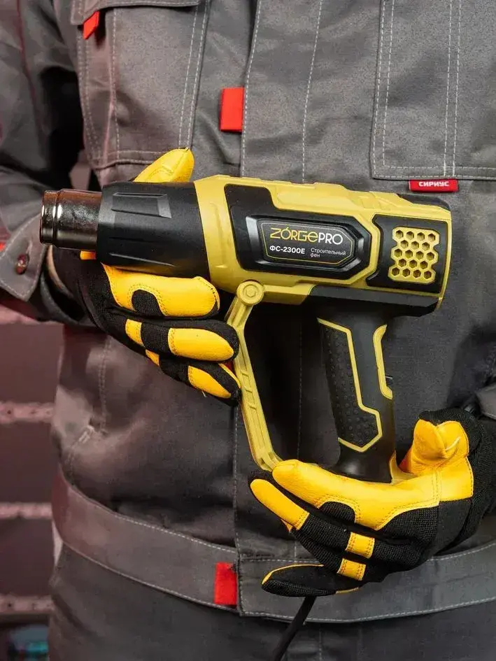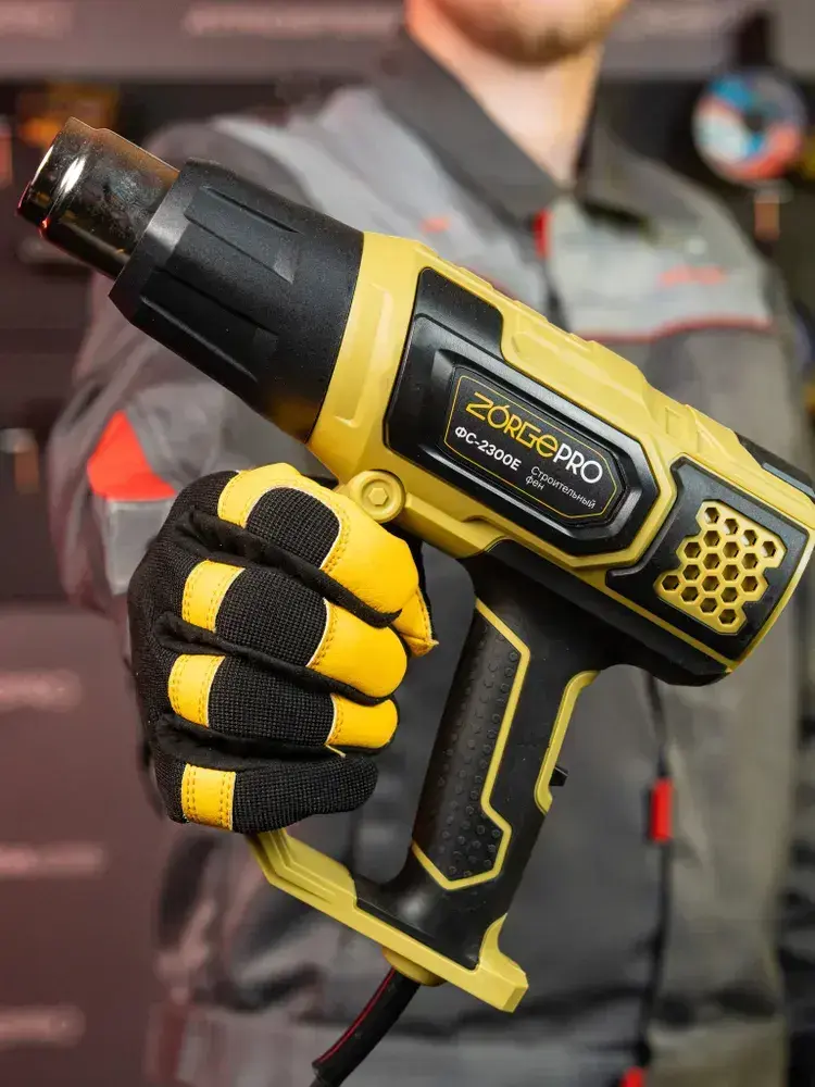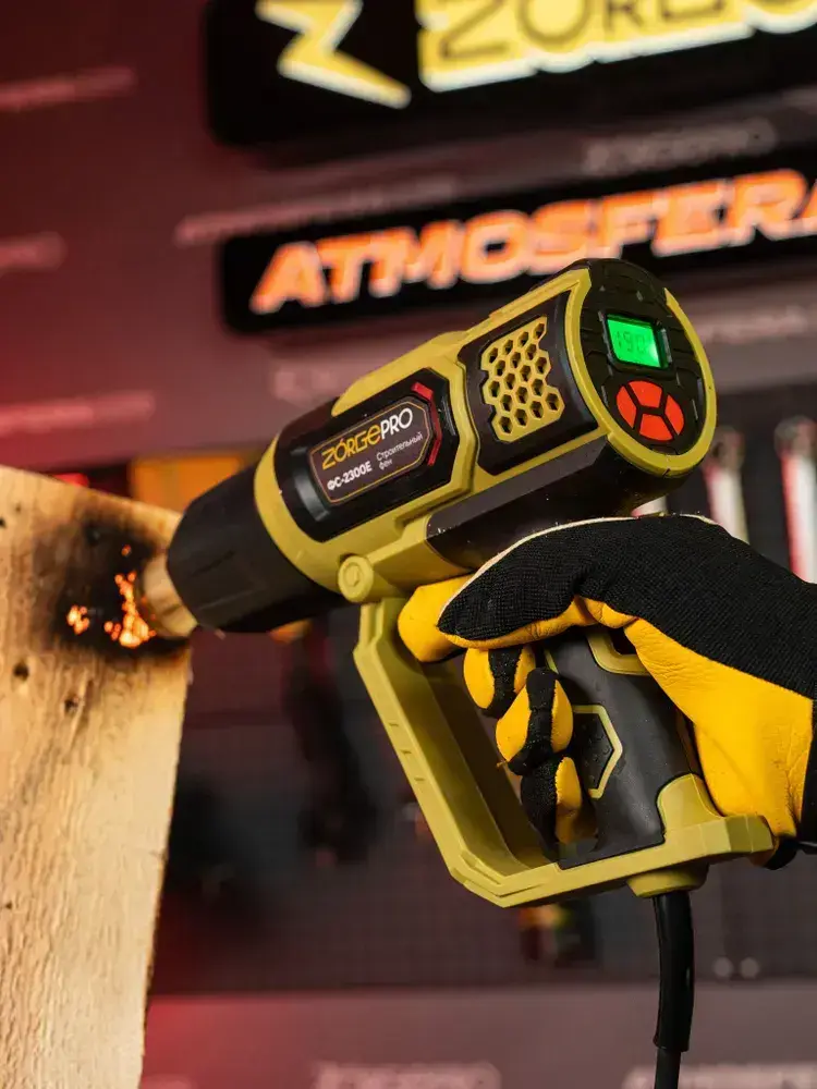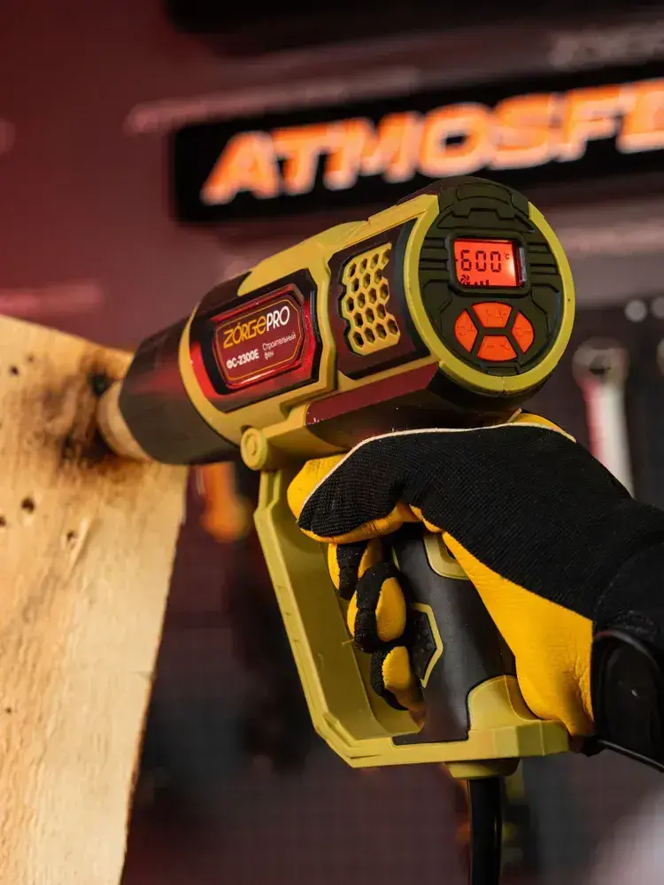 Фен строительный с дисплеем ZORGEPRO ФС-2300-E ( С НАБОРОМ КЕЙС, 2300 Вт, 300-500 л/мин, 60 / 600 градусов, Керамический Нагревательный Элемент )