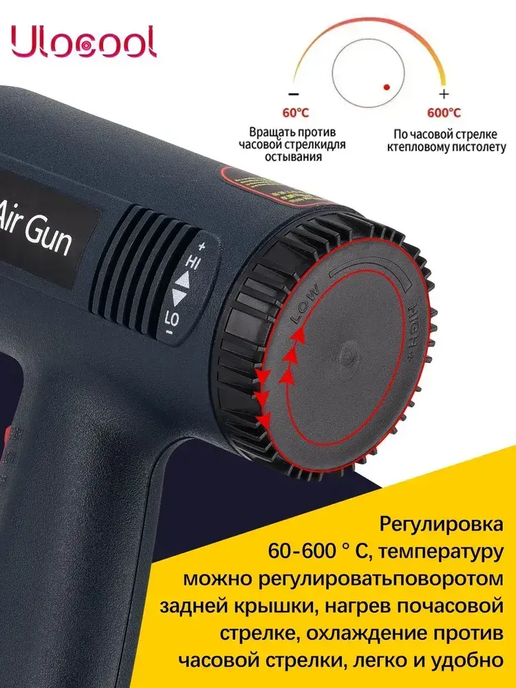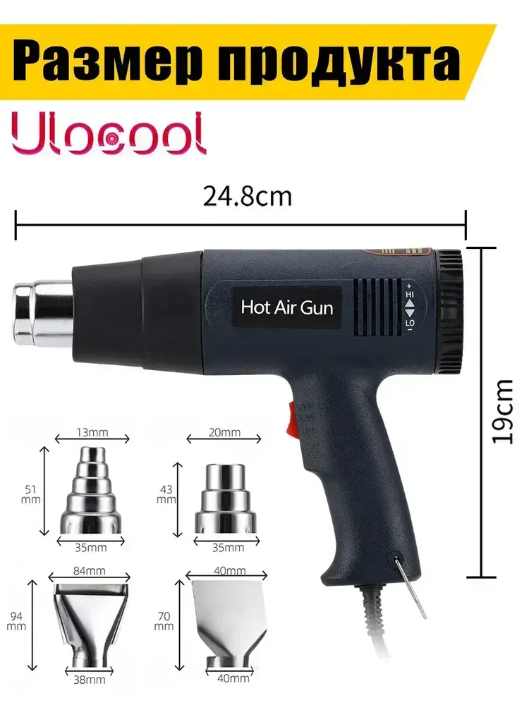 фен строительный с кейсом /Строительный фен / Бесступенчатый термостат /2000 Вт/Ручная регулировка(220 В, 2000 Вт, 300-500 л/мин, 60-600 градусов)