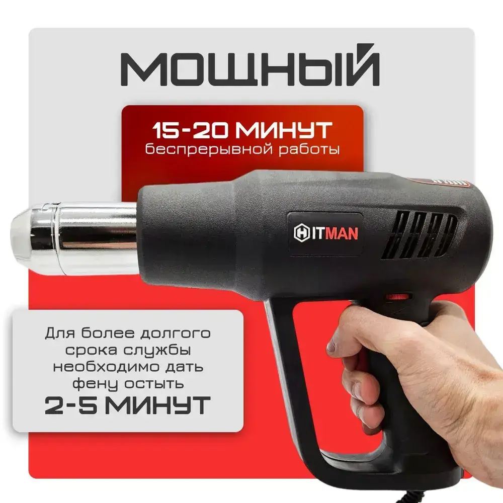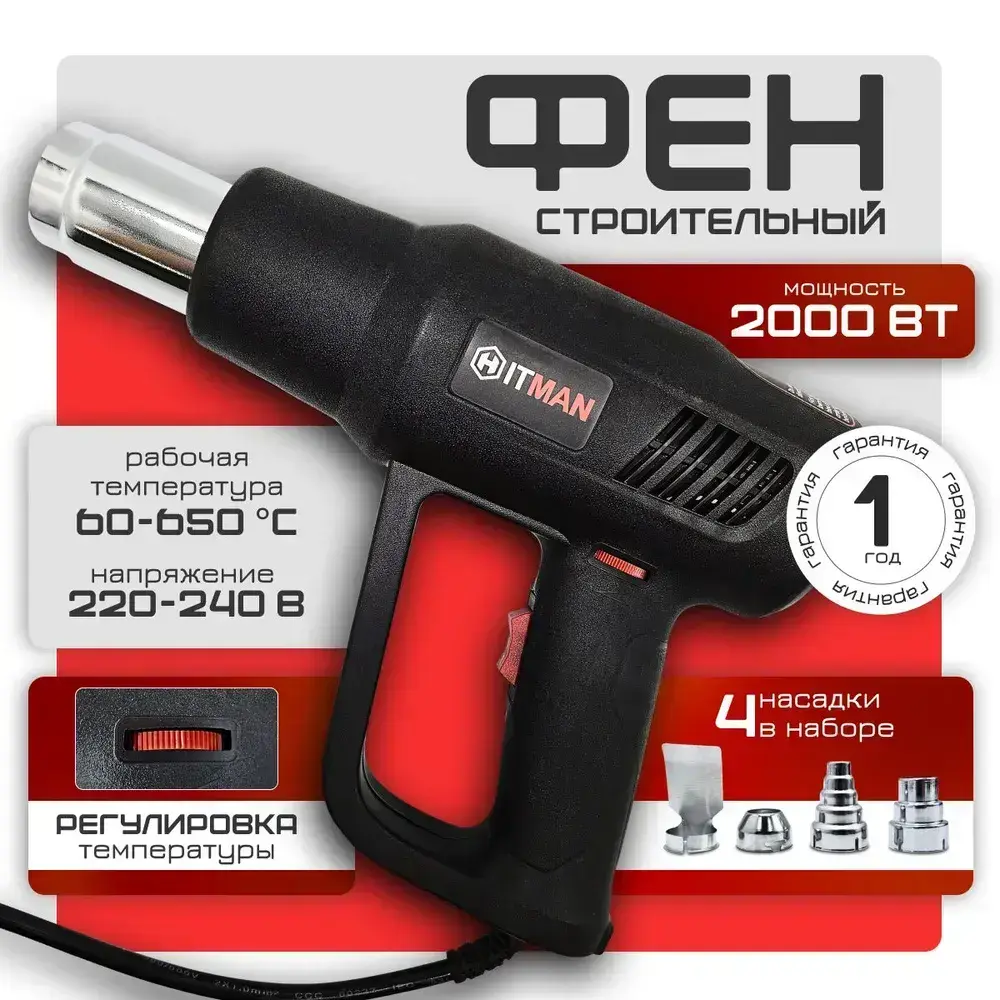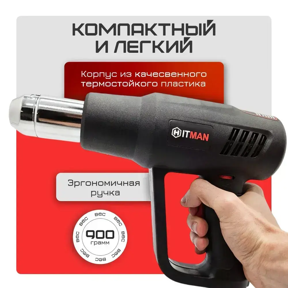Фен строительный с регулировкой температуры, Hitman 2000вт фен технический, строительный с регулировкой температуры