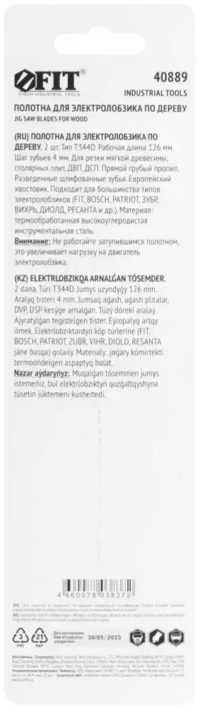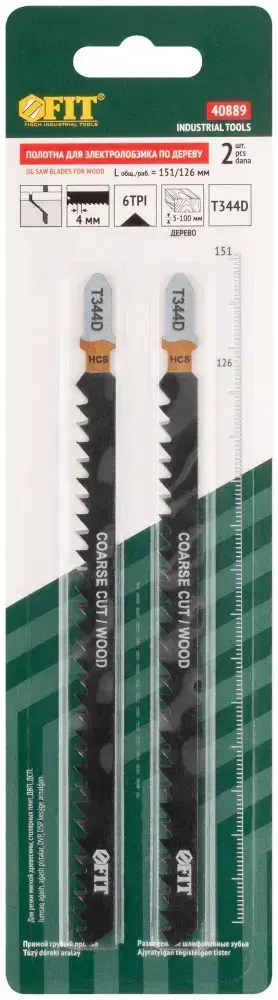 FIT Пилки по дереву для электролобзика 151/126/ шаг 4 мм полотна HCS разведенные шлифованные, набор 2 шт.