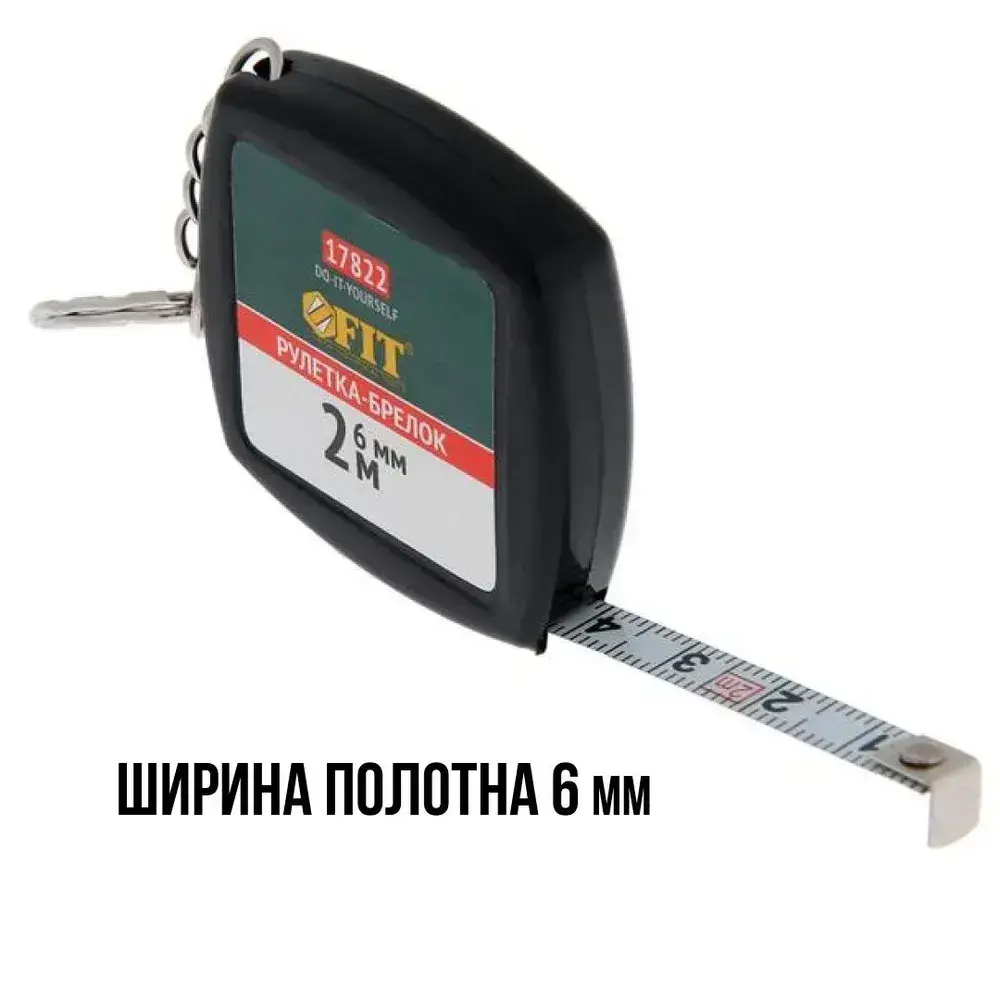 FIT Рулетка брелок 2 м x 6 мм строительная измерительная стальная лента