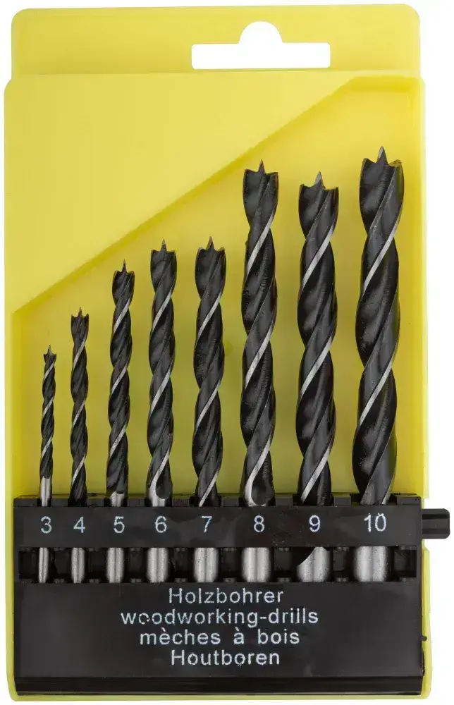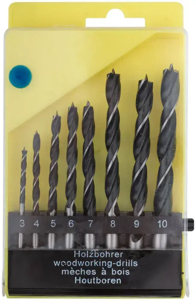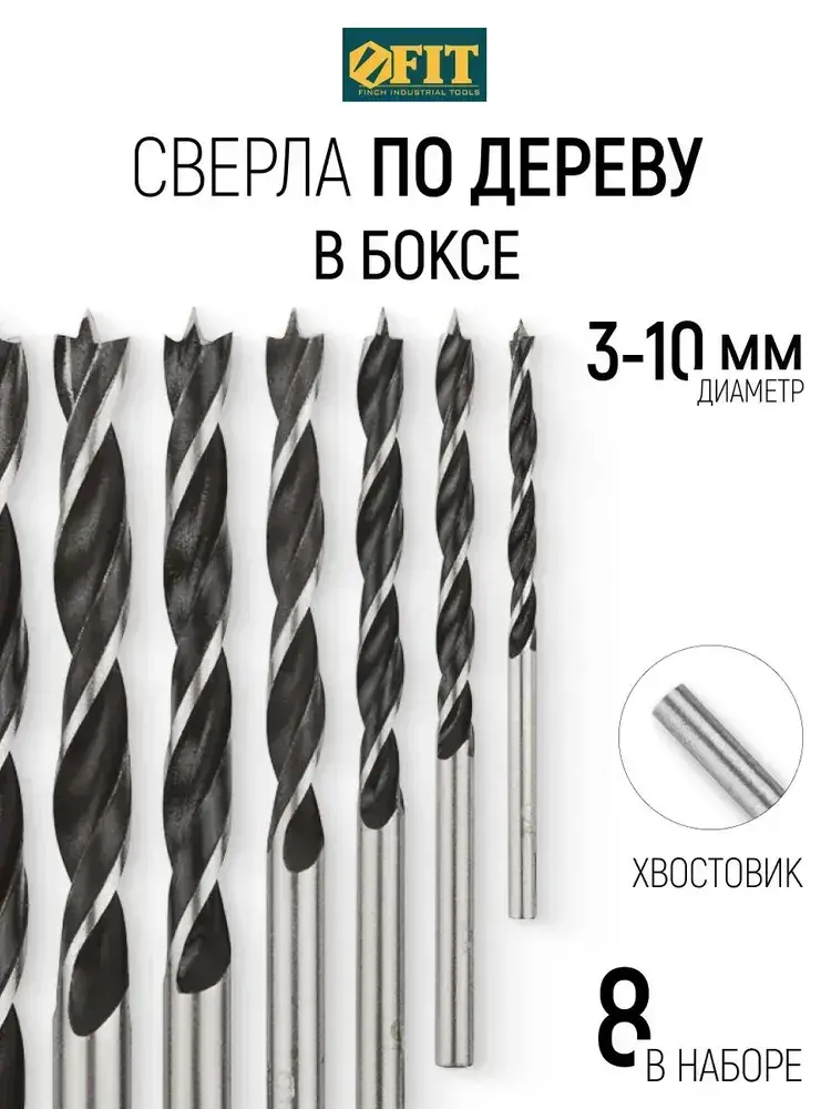 FIT Сверла по дереву набор 8 шт. 3, 4, 5, 6, 7, 8, 9, 10 мм цилиндрический хвостовик