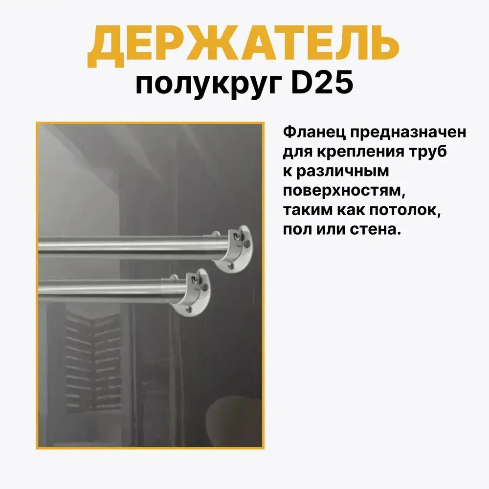 Фланец открытый R11 для трубы D25, держатель полукруг для съёмной трубы к системе Joker, штангодержатель с фиксатором половинка, комплект 2 шт